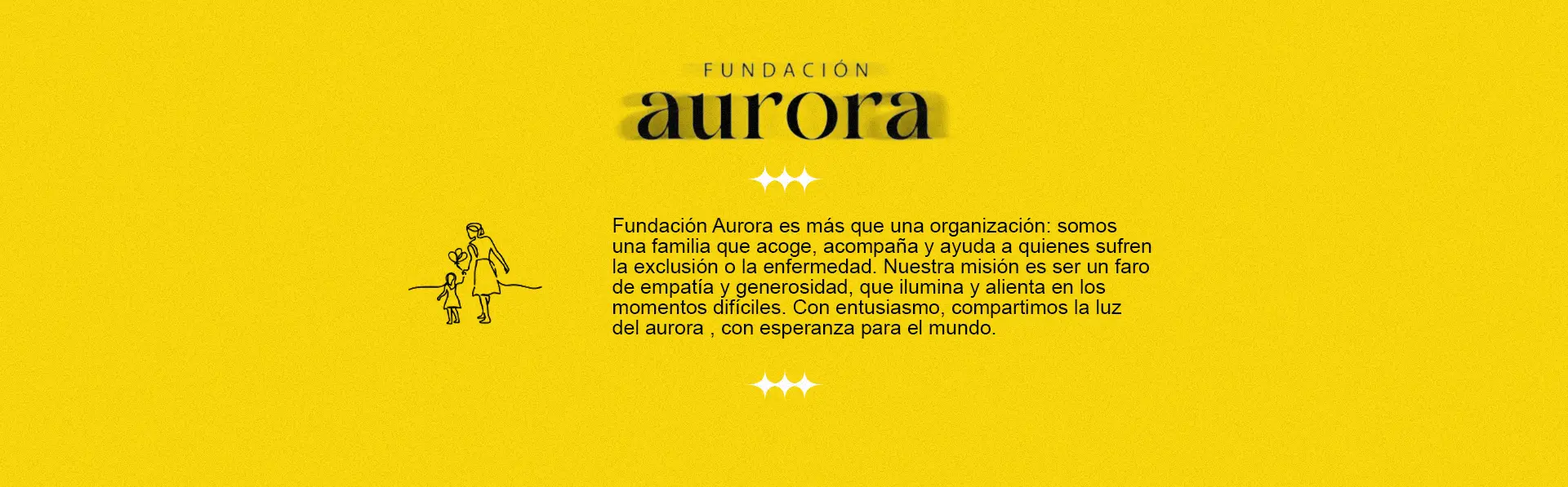 Fundación Aurora es más que una organización: somos una familia que acoge, acompaña y ayuda a quienes sufren la exclusión o la enfermedad. Nuestra misión es ser un faro de empatía y generosidad, que ilumina y alienta en los momentos difíciles. Con entusiasmo, compartimos la luz del aurora , con esperanza para el mundo.